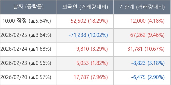 [표] 외국인ㆍ기관 순매매량 (단위 주)