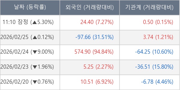[표] 외국인ㆍ기관 순매매량 (단위 만주)