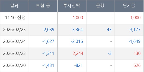 ※ 장중 매매동향은 잠정치이므로 실제 매매동향과 차이가 발생할수 있음