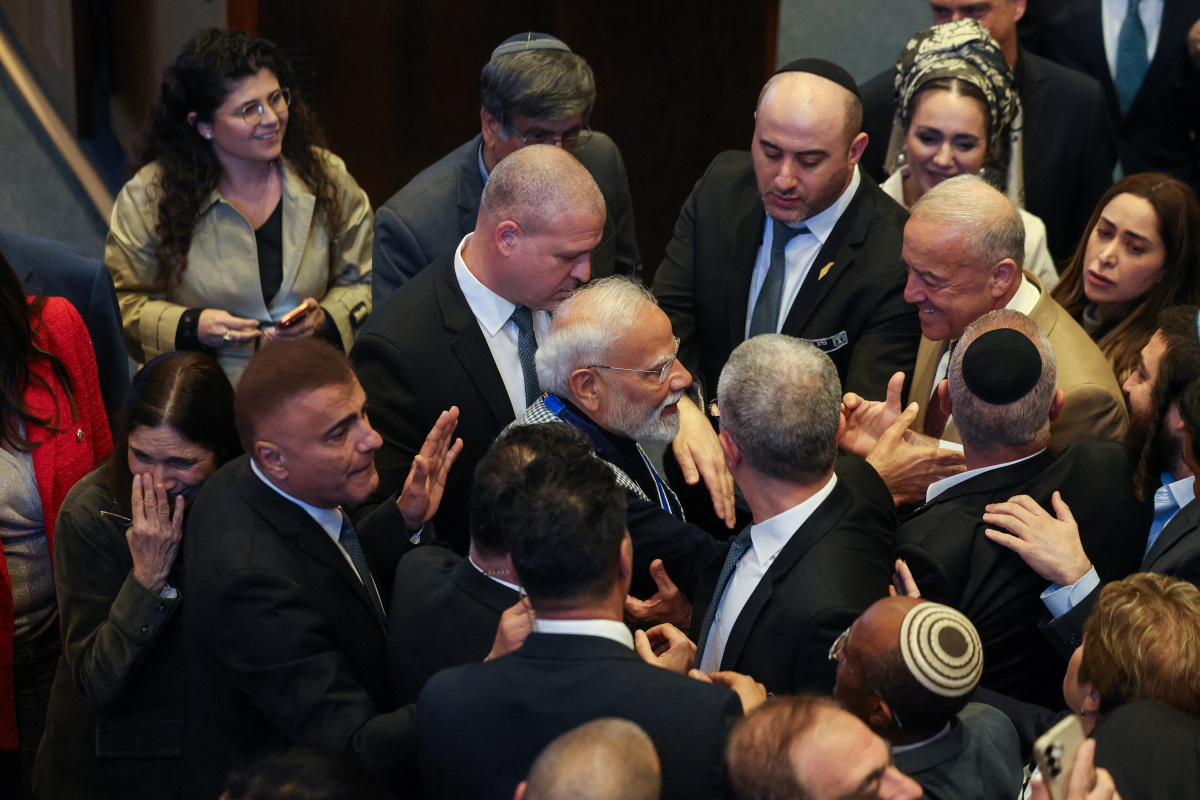 [예루살렘 로이터=뉴스핌] 홍우리 특파원 = 25일(현지 시간) 나렌드라 모디 인도 총리가 이스라엘 예루살렘의 크네세트(의회) 특별 회의에 참석하고 있다 2026.02.26 hongwoori84@newspim.com