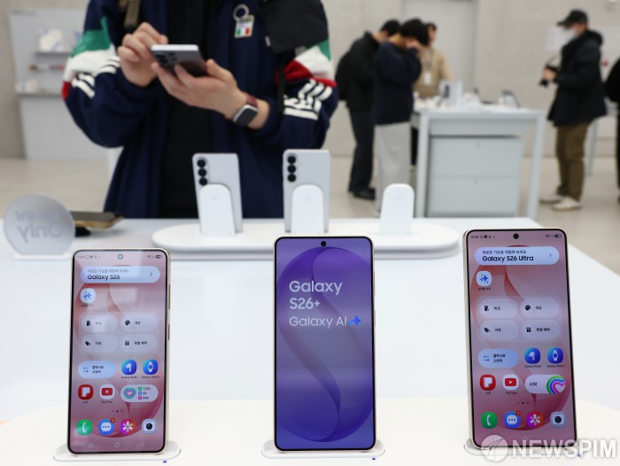 [서울=뉴스핌] 김현우 기자 = 삼성전자가 '갤럭시 S26' 시리즈를 공개한 26일 서울 서초구 삼성 강남에서 방문객이 '갤럭시 S26 시리즈'를 체험하고 있다. 삼성전자는 25일(현지시간) 미국 샌프란시스코에 위치한 팰리스 오브 파인 아트에서 '갤럭시 언팩 2026' 행사를 개최해 갤럭시S26 울트라와 갤럭시S26+(플러스), 갤럭시S26 등 세 모델을 공개했다. 2026.02.26 khwphoto@newspim.com