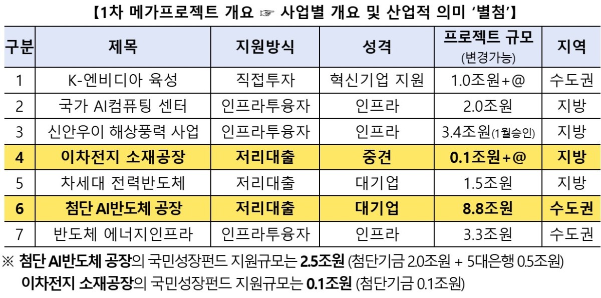 [서울=뉴스핌] 채송무 기자 = '울산 차세대 이차전지 소재공장 구축사업'과 '평택 5라인 AI 반도체 클러스터 구축 프로젝트'가 26일 개최된 국민성장펀드 기금운용심의회 의결을 통해 첨단전략산업기금의 저리대출 대상 사업으로 확정됐다.