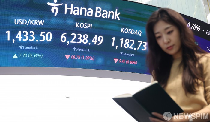 [서울=뉴스핌] 정일구 기자 = 27일 코스피 지수가 전 거래일보다 109.78포인트(1.74%) 하락한 6197.49에 출발했다. 코스닥 지수는 전 거래일보다 12.75포인트(1.07%) 내린 1175.40에 시작했다. 서울 외환시장에서 달러/원 환율은 전 거래일 주간거래 종가보다 6.4원 오른 1432.2원에 개장했다. 이날 오전 서울 중구 하나은행 딜링룸에서 딜러들이 업무를 보고 있다. 2026.02.27 mironj19@newspim.com