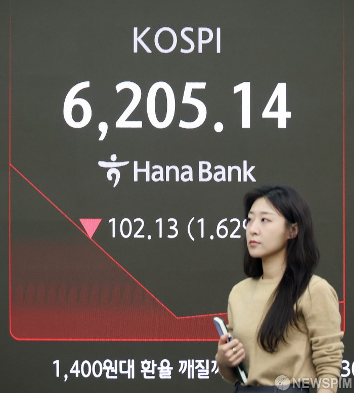 [서울=뉴스핌] 정일구 기자 = 27일 코스피 지수가 전 거래일보다 109.78포인트(1.74%) 하락한 6197.49에 출발했다. 코스닥 지수는 전 거래일보다 12.75포인트(1.07%) 내린 1175.40에 시작했다. 서울 외환시장에서 달러/원 환율은 전 거래일 주간거래 종가보다 6.4원 오른 1432.2원에 개장했다. 이날 오전 서울 중구 하나은행 딜링룸에서 딜러들이 업무를 보고 있다. 2026.02.27 mironj19@newspim.com