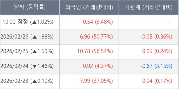 [표] 외국인ㆍ기관 순매매량 (단위 만주)