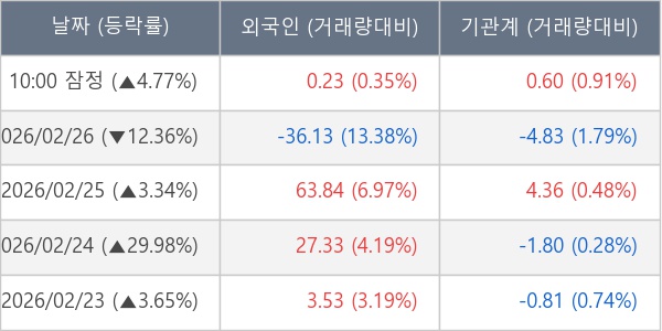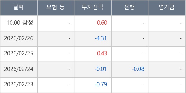 [표] 주요 기관별 순매매량 (단위 만주)