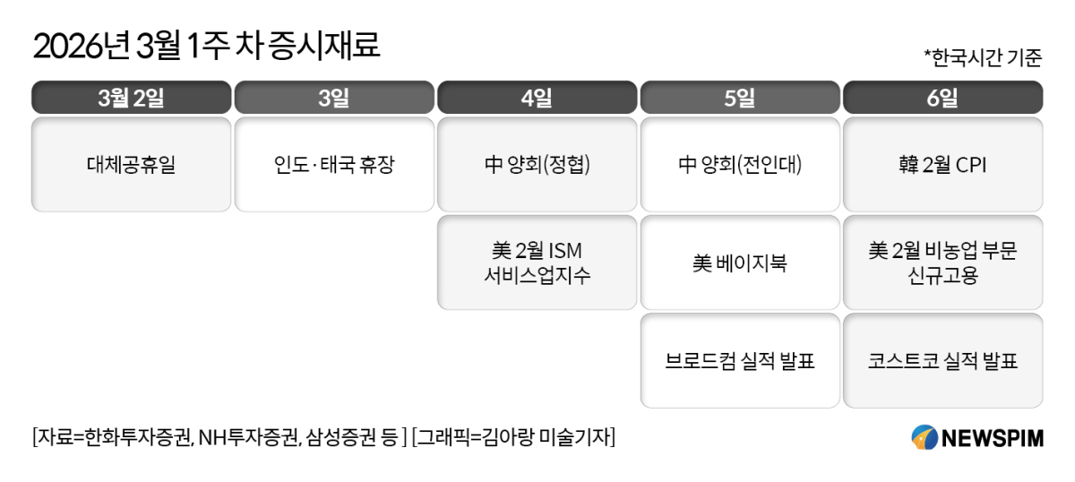 [서울=뉴스핌] 김가희 기자 = 이번 주(3~6일) 국내 증시는 중동발 지정학적 리스크와 중국 양회, 미국 고용지표 등 대형 이벤트를 동시에 소화하며 변동성 장세를 이어갈 전망이다.