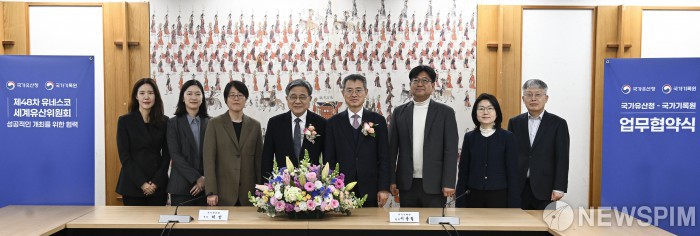 [서울=뉴스핌] 이용철 행정안전부 국가기록원장(오른쪽 다섯번째)과 허민 국가유산청장이 27일 오후 정부대전청사에서 제48차 세계유산위원회의 성공적인 개최를 위한 업무협약서(MOU)에 서명 후 양기관 참석자들과 기념촬영을 하고 있다.[사진=행정안전부] 2026.02.27 photo@newspim.com