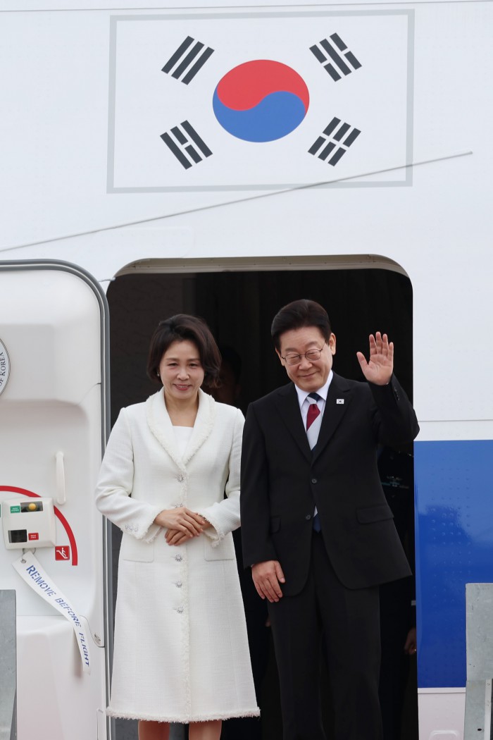 [성남=뉴스핌] 이형석 기자 = 이재명 대통령과 배우자 김혜경 여사가 1일 성남공항에서 싱가포르-필리핀 정상회담 참석을 위해 출국하고 있다. 2026.03.01 leehs@newspim.com