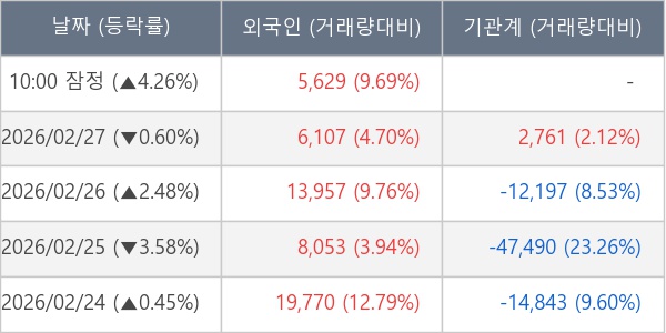 [표] 외국인ㆍ기관 순매매량 (단위 주)