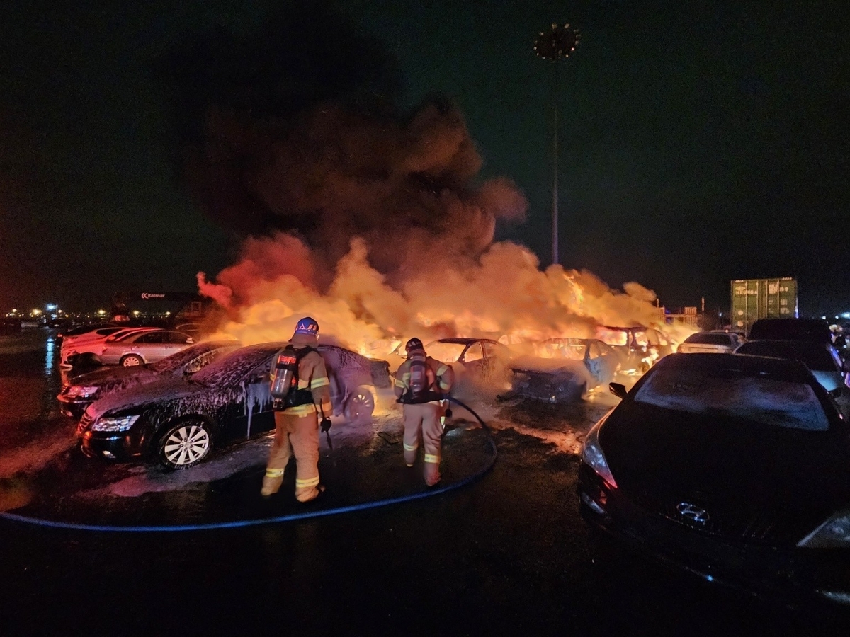 3일 인천소방본부에 따르면 전날 오후 9시 5분께 중구 항동7가 인천 남항 선광부두 인근 중고차 야적장에서 불이 났다.