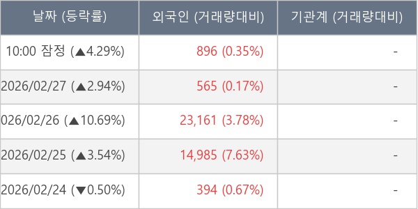 [표] 외국인ㆍ기관 순매매량 (단위 주)
