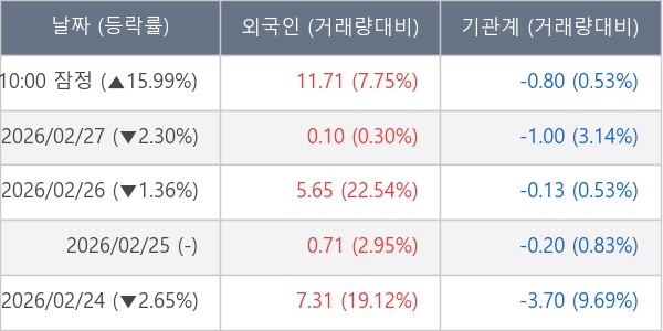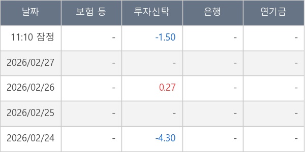 [표] 주요 기관별 순매매량 (단위 만주)