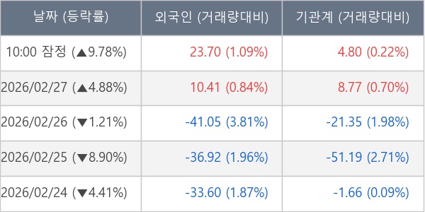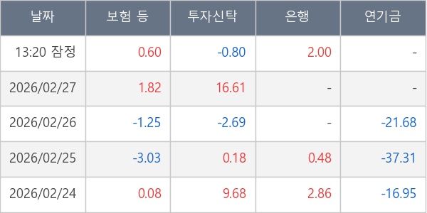[표] 주요 기관별 순매매량 (단위 만주)
