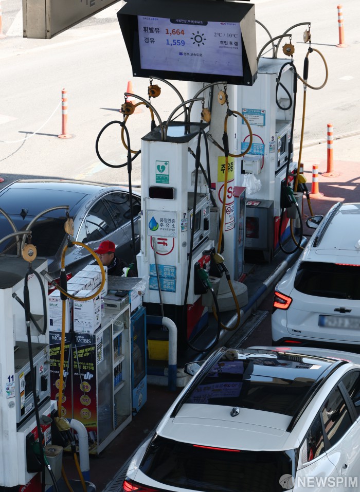 [서울=뉴스핌] 김현우 기자 = 국제 유가가 전 세계 원유 물동량 상당 부분을 차지하는 호르무즈 해협 봉쇄의 여파로 급등하고 있는 3일 서울 서초구 만남의광장 주유소에서 시민들이 주유를 하고 있다. 국내 주유소 휘발유와 경유 가격은 2주 연속 상승하고 있다. 2026.03.03 khwphoto@newspim.com