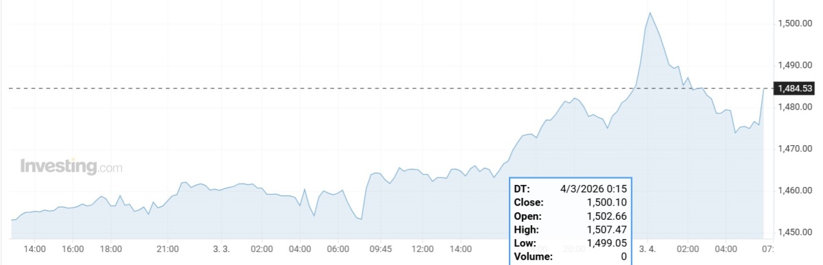 인베스팅닷컴에 따르면 한국시간 4일 0시쯤 뉴욕 장에서 달러/원 환율이 1500원을 처음 넘어섰다. 급등세를 지속한 환율은 0시 15분쯤 1507.47원까지 치솟았다가 1484.53원으로 장을 마쳤다.