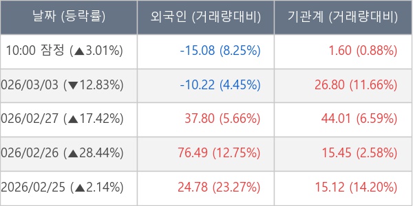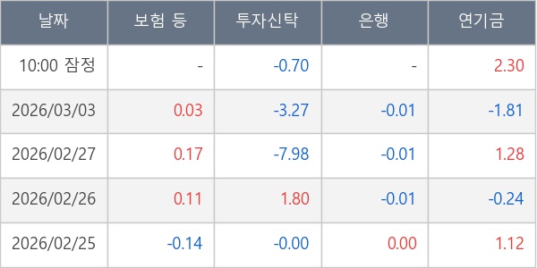 [표] 주요 기관별 순매매량 (단위 만주)