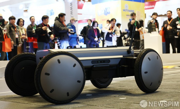 [서울=뉴스핌] 김현우 기자 = 4일 오전 서울 강남구 코엑스에서 열린 2026 스마트공장·자동화산업전(AW2026)에서 현대자동차그룹 로보틱스랩의 모베드(MobED)의 시연이 진행되고 있다. 2026.03.03 khwphoto@newspim.com