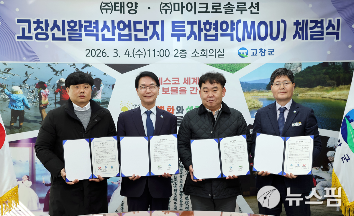 고창신활력산단 투자유치 MOU(왼쪽부터 (주)태양, 고창군, 마이크로솔루션)[사진=고창군] 2026.03.04 gojongwin@newspim.com