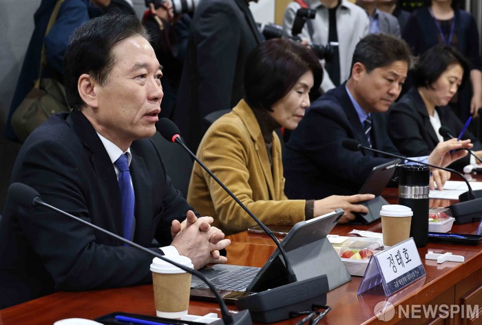 [서울=뉴스핌] 윤창빈 기자 = 정태호 국회 재정경제위원회 더불어민주당 간사가 5일 오전 서울 여의도 국회 의원회관에서 열린 중동 현안 관련 더불어민주당-재계 긴급 간담회에서 모두발언을 하고 있다. 2026.03.05 pangbin@newspim.com