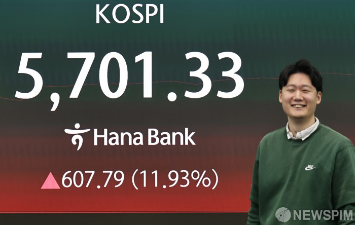据韩国交易所5日发布的数据,截至当天上午9时12分,KOSPI指数报5624.24点,较前一交易日上涨530.70点(10.42%)。个人和外国投资者分别净买入1783亿韩元和1713亿韩元,机构投资者净卖出2958亿韩元。