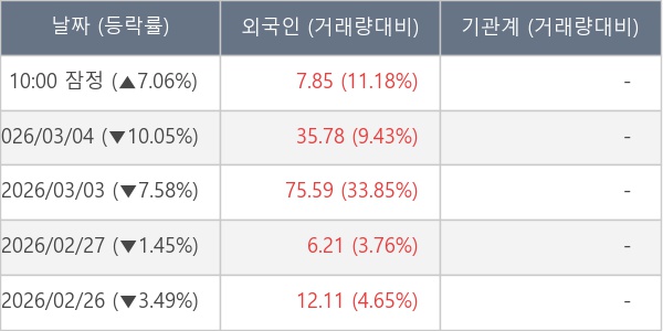 [표] 외국인ㆍ기관 순매매량 (단위 만주)