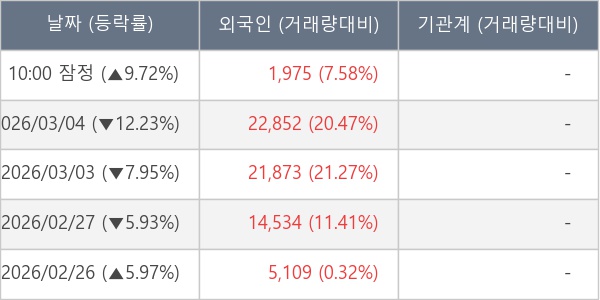 [표] 외국인ㆍ기관 순매매량 (단위 주)