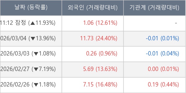 [표] 외국인ㆍ기관 순매매량 (단위 만주)