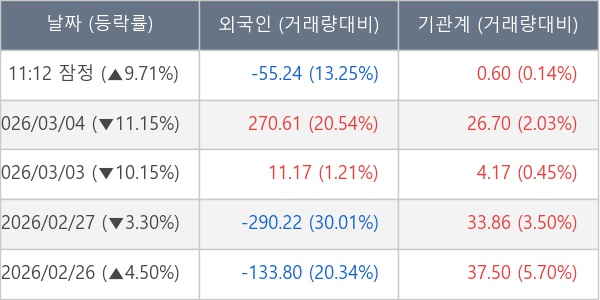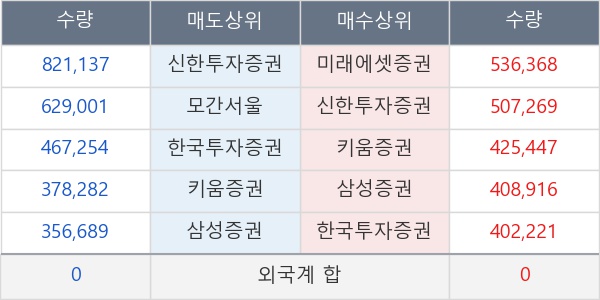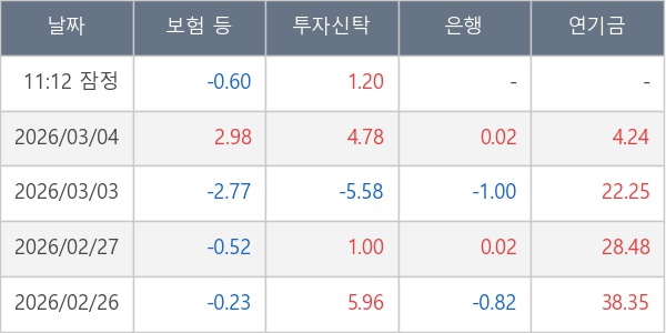 [표] 주요 기관별 순매매량 (단위 만주)
