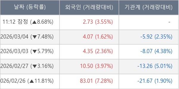 [표] 외국인ㆍ기관 순매매량 (단위 만주)