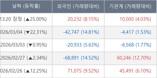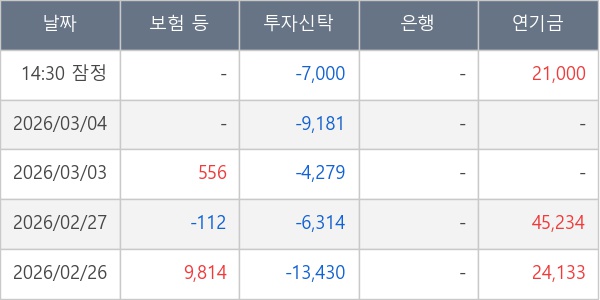 [표] 주요 기관별 순매매량 (단위 주)