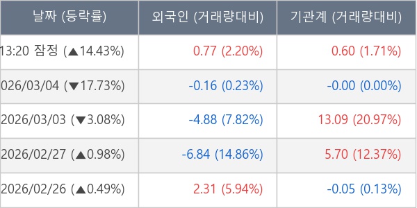 [표] 주요 기관별 순매매량 (단위 만주)