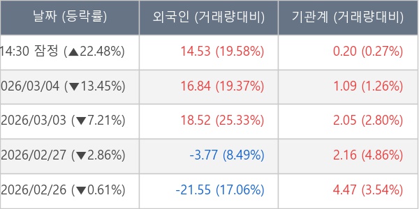 ※ 사모펀드 등 일부 기관의 순매매량은 표시되지 않음