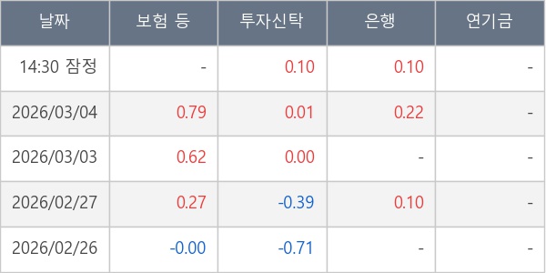 [표] 주요 기관별 순매매량 (단위 만주)