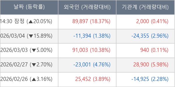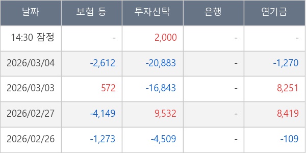 [표] 주요 기관별 순매매량 (단위 주)