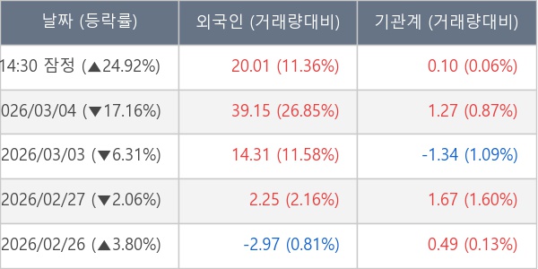 ※ 사모펀드 등 일부 기관의 순매매량은 표시되지 않음