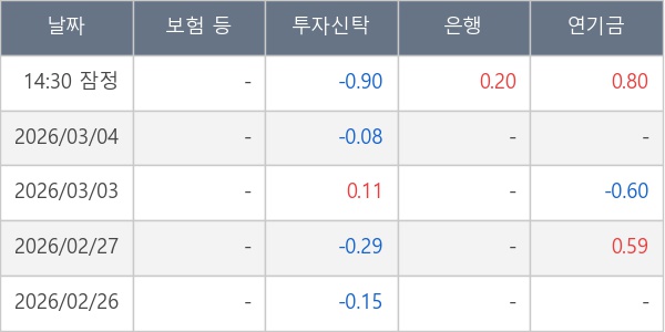 [표] 주요 기관별 순매매량 (단위 만주)