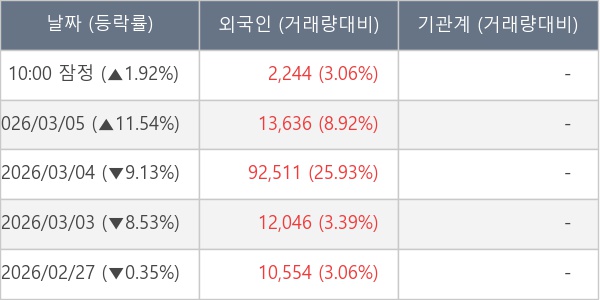 [표] 외국인ㆍ기관 순매매량 (단위 주)