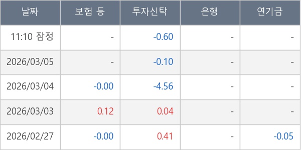 [표] 주요 기관별 순매매량 (단위 만주)
