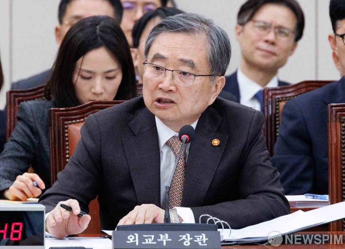 [서울=뉴스핌] 윤창빈 기자 = 조현 외교부 장관이 6일 오전 서울 여의도 국회에서 외교통일위원회에서 열린 중동 사태관련 긴급 현안질의에서 의원 질문에 답변하고 있다. 2026.03.06 pangbin@newspim.com