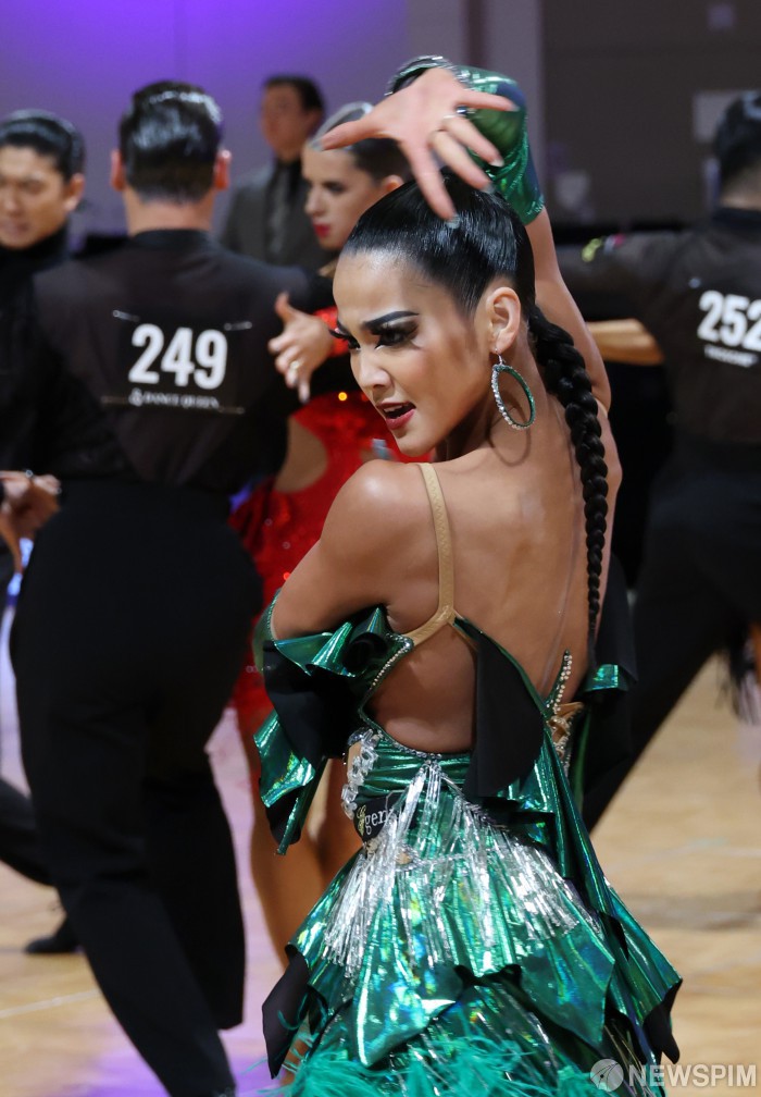 [영종도=뉴스핌] 김현우 기자 = 6일 인천광역시 중구 운서동 파라다이스시티에서 열린 '2026 코리아오픈 댄싱 인 더 파라다이스시티'에 참가한 선수들이 퍼포먼스를 선보이고 있다. 2026.03.06 khwphoto@newspim.com