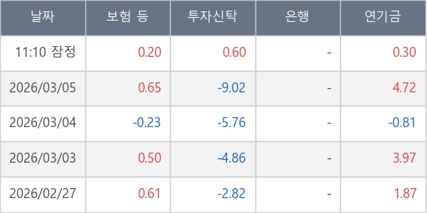 ※ 장중 매매동향은 잠정치이므로 실제 매매동향과 차이가 발생할수 있음