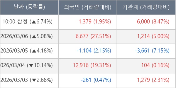 [표] 주요 기관별 순매매량 (단위 주)