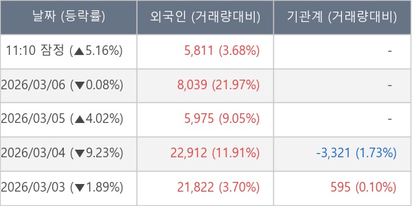 [표] 외국인ㆍ기관 순매매량 (단위 주)