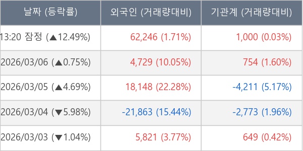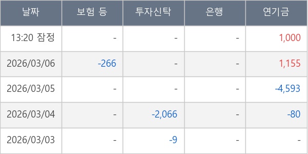 [표] 주요 기관별 순매매량 (단위 주)