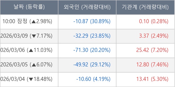 [표] 주요 기관별 순매매량 (단위 만주)