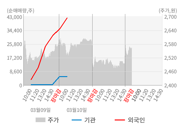 [서울=뉴스핌] 로보뉴스 = 10일 10시 15분 현재 프레스티지바이오로직스(334970)는 전일 대비 3.64% (현재가 2,565원) 상승했고, 외국인이 최근 6일 연속 순매수(누적 14.54만 주, 잠정) 행진을 하고 있다.