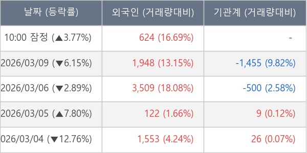 [표] 외국인ㆍ기관 순매매량 (단위 주)