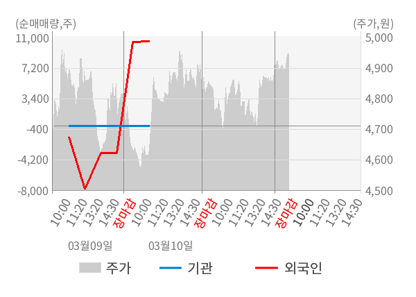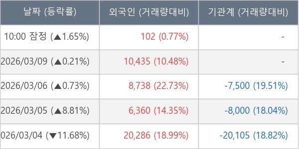 [표] 외국인ㆍ기관 순매매량 (단위 주)