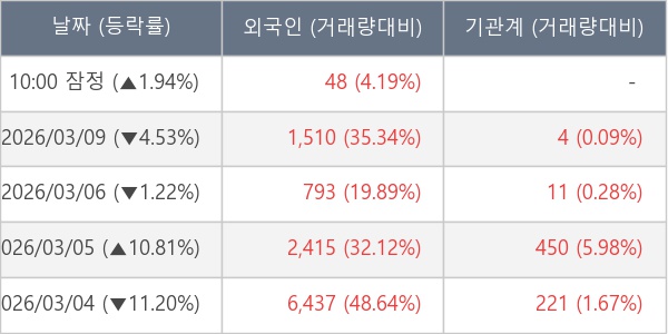 [표] 외국인ㆍ기관 순매매량 (단위 주)
